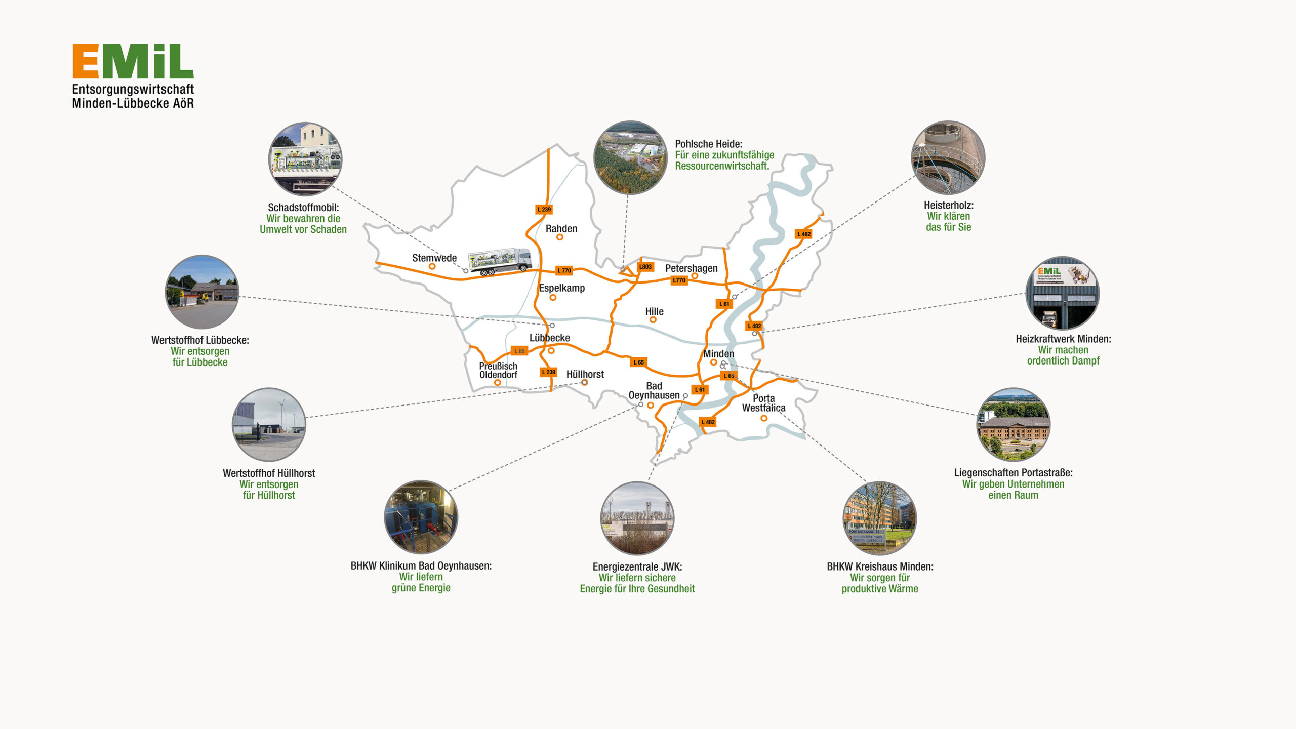 BHKW Kreishaus Minden Die gesamte Kreisverwaltung an der Portastraße in Minden erhält seine regenerative Energie von der EMiL. Strom und Wärme aus Biomethan erzeugt die EMiL direkt vor Ort mittels…